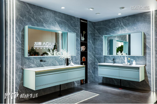 本次参展,惠达卫浴推出了君翎系列、晨曦系列、锦瑟系列、流光·墨韵系列、流光·雅筑系列、圆舞·灵韵系列等新品浴室柜,主打ENF级健康板材,释放量仅为传统E1级的五分之一,且集成牙刷消毒、紫外线杀菌等功能模块。惠达还推出了大尺寸FFC材质陶瓷柜盆,利用自有专利技术满足市场对定制化、高品质的需求。