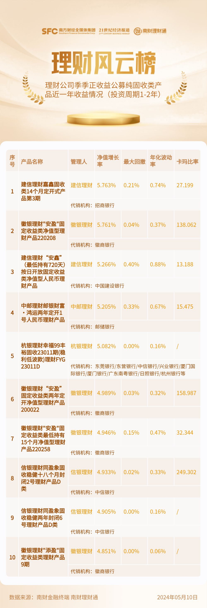 产品分析:徽银理财、建信理财产品进入收益榜单前三
