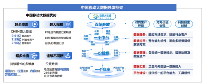 每天接入数据50TB、总数据资产储备已达到1.2PB,每天汇总和实时处理的各类通信和业务数据超过800亿条,可利用全网客户特征模型和标签超过10万。这正是基于中国移动梧桐大数据算力资源底座实现的。