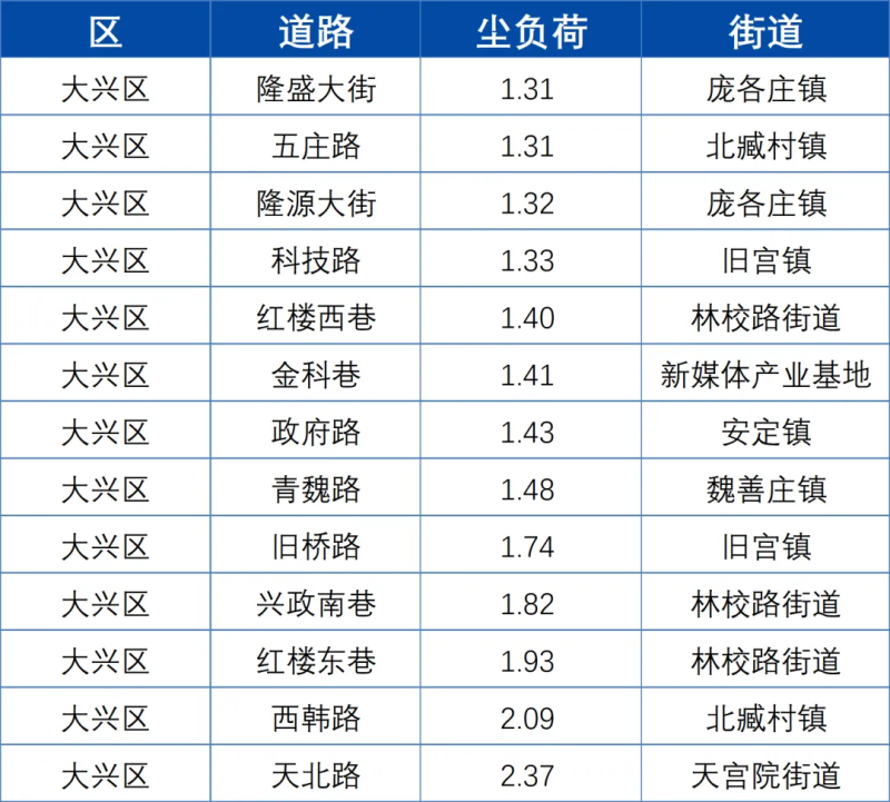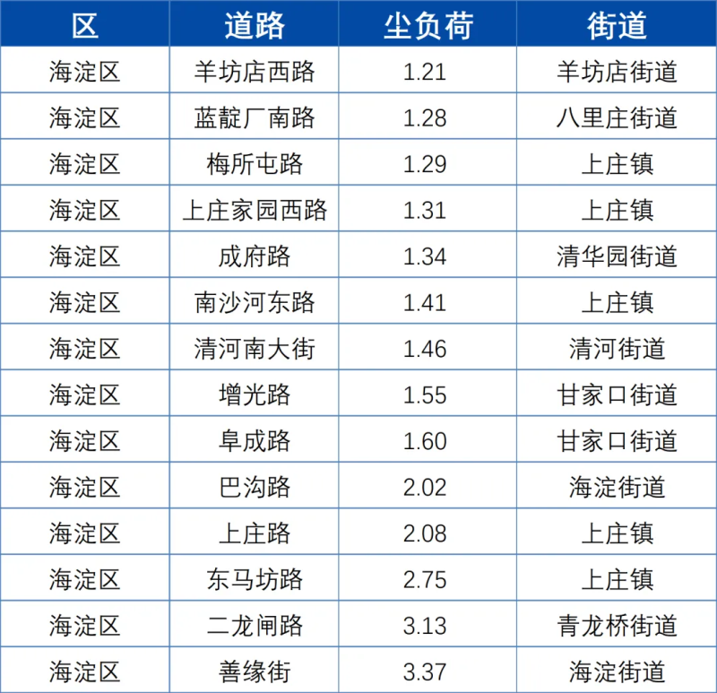 新京报讯 据北京生态环境微信公众号5月16日消息,北京市生态环境局委托第三方机构,2024年3月20日-4月19日对本市平原地区各主要道路进行了道路尘负荷监测,其中,有13个区的部分道路尘负荷评价等级为差,现予以公布如下。后续,市生态环境局还将继续组织开展尘负荷监测,并对扬尘控制效果差的道路进行点名,并实施全覆盖“回头看”,帮扶指导,督促整改提升。