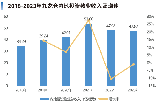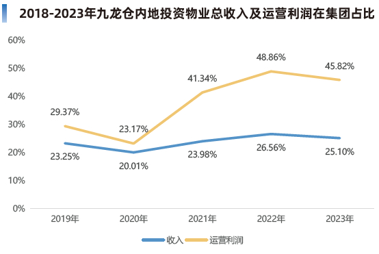 另从投资物业收入及运营利润在集团的占比来看,内地部分的占比呈逐年升高趋势,运营利润上在2023年占集团总量的45.82%,业绩贡献并不弱,且有明显优势。