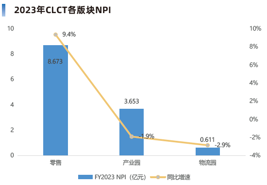 CLCT积极换仓、调整之下,零售物业收入持续增长。2023年,零售投资组合的物业净收入(NPI)达8.67亿元,同比增长9%,带动CLCT整体业绩增长。尤其在市场下行周期,相比产业园与物流园业态,零售商业更显韧性。