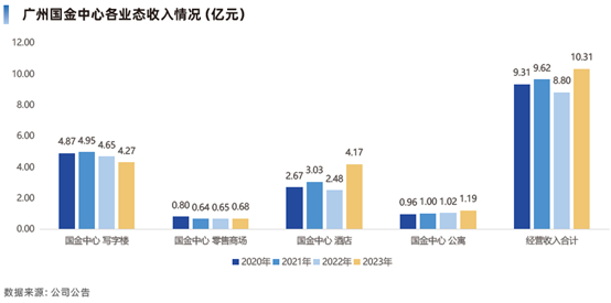从经营收入贡献占比来说,位于核心区位且综合了写字楼、酒店、零售商场、公寓4大业态的广州IFC占比高达49.4%,经营收入同比增长17.16%,很好地发挥了核心资产作为收入的压舱石的功能。