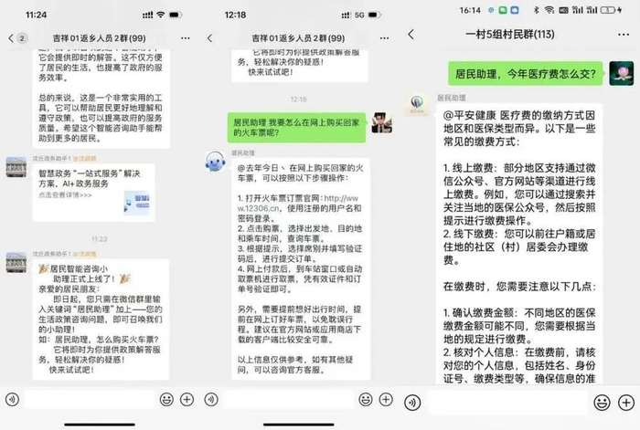 在河南省多个市县,所有的居民群中都加入了“居民助理”。无论医保缴费等政务需求还是日常生活的琐碎需求,“居民助理”都可以7x24小时回复,突发紧急需求还可以被转成工单,由人工快速响应。“居民助理”一方面解决了街道和社区大基数的回复压力大的工作难题,同时又能帮助他们应对突发情况。