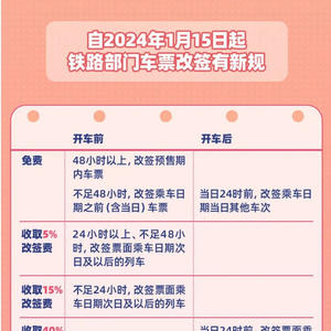 3、开车前不足24小时,改签票面乘车日期之后的列车时,按改签前后低票价车票票面价格的15%计。