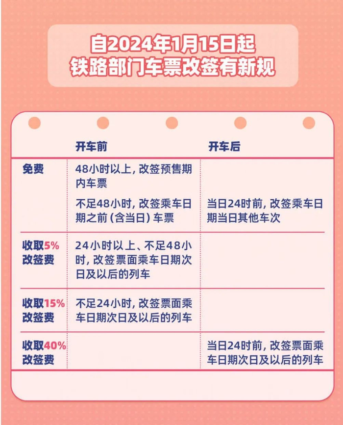 4、开车后在当日24时之前,改签次日及以后列车时,按改签前后低票价车票票面价格的40%计。