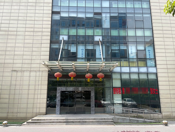 长沙市岳麓区芯城科技园7栋紧邻旺龙路,曾是永雄集团总部所在地,如今招牌已经被拆除,玻璃墙上贴着“整栋租售”的红色大字。