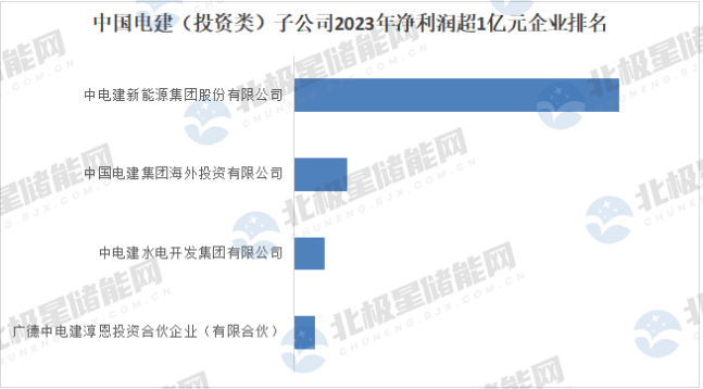 2023年度净利润额在1亿元以上的有4家,年度净利润额在0-1亿元内的有8家。净利润额超1亿元的企业排名为:中电建新能源集团、中国电建集团海外投资、中电建水电开发、广德中电建淳恩投资合伙企业。