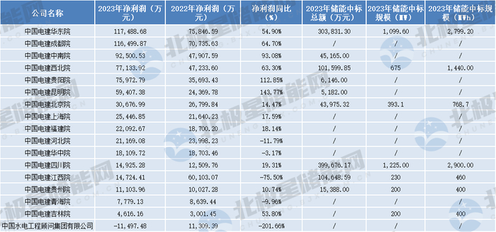 北极星储能网讯:近日,中国电力建设股份有限公司(以下简称“中国电建”)正式发布了2023年企业年报。其中从事勘探设计、经常活跃于储能EPC领域的重要选手,中国电建各大设计院净利润榜单同时揭晓。