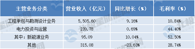 从主营业务情况来看,2023年中国电建的业务涵盖工程承包与勘察设计、电力投资与运营、设备制造与租赁等。