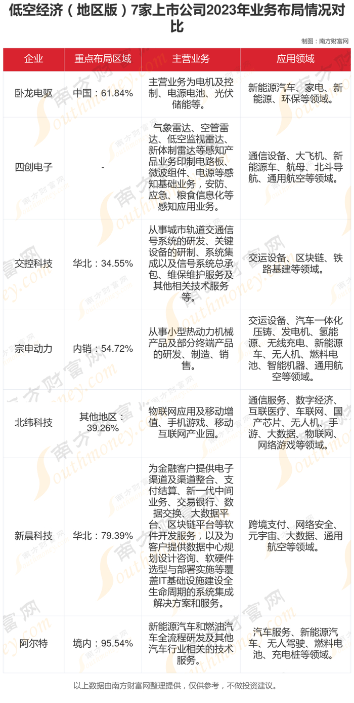 根据南方财富网产业链数据显示,业务布局上,2023年交控科技、新晨科技重点布局区域在华北,业务占比分别为34.55%、79.39%;卧龙电驱、北纬科技、宗申动力、阿尔特重点布局区域分别在中国、其他地区、内销、境内,业务占比分别为61.84%、39.26%、54.72%、95.54%。