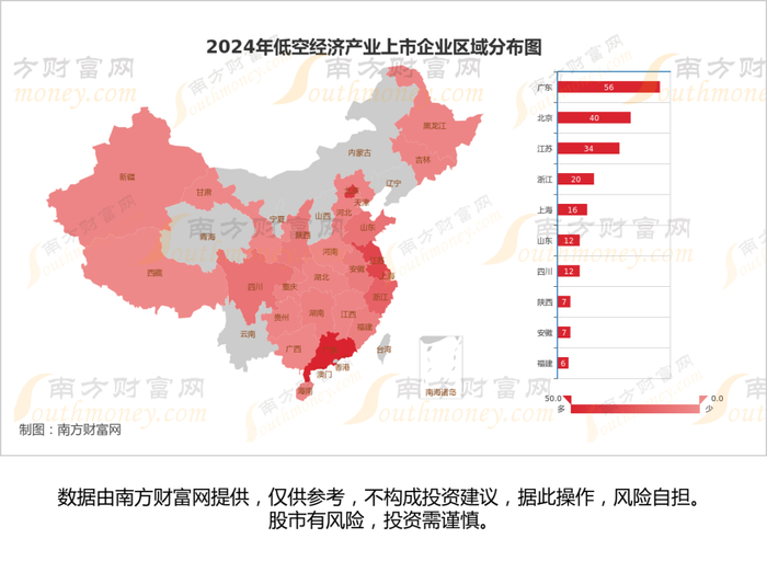 从上市公司地区的分布情况来看,A股252家低空经济相关上市公司分布在广东、北京、江苏、浙江、上海等省市,总体来看主要集中于华东区域。