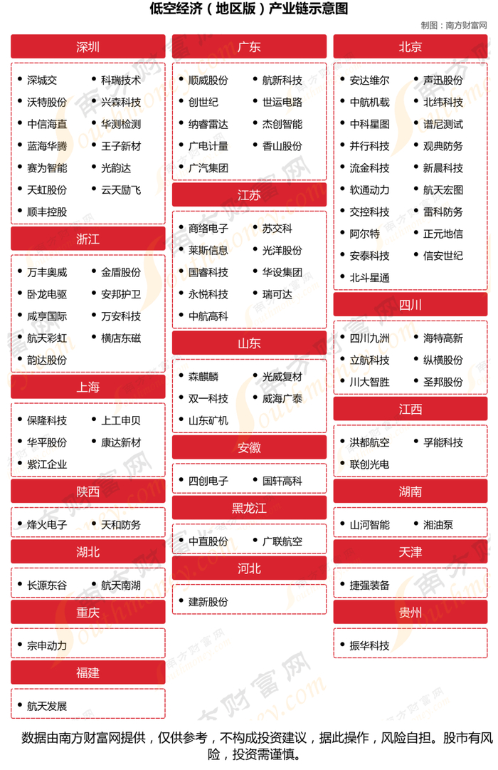 低空经济(地区版)产业链包含深圳、广东、北京、浙江、江苏、四川等环节。