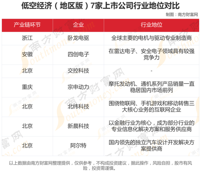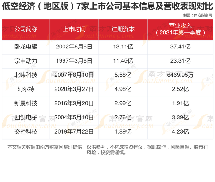 据南方财富网产业链不完全整理,本文主要对比分析了卧龙电驱、四创电子、交控科技、宗申动力、北纬科技、新晨科技、阿尔特等7家上市公司。