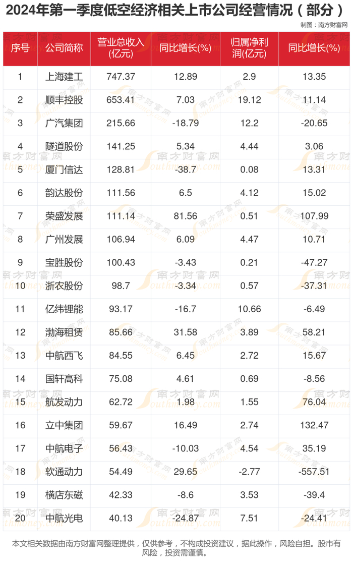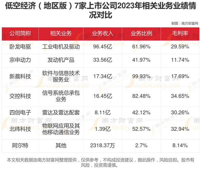 低空经济(地区版)相关业务来看,谁更盈利?