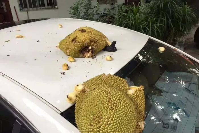 不过,进入“丰收”模式的菠萝蜜容易坠落,可能伤到人,停在户外的车也会“挂彩”。大家在街道上遇到果实成熟的菠萝蜜树,一定要对其避而远之。
