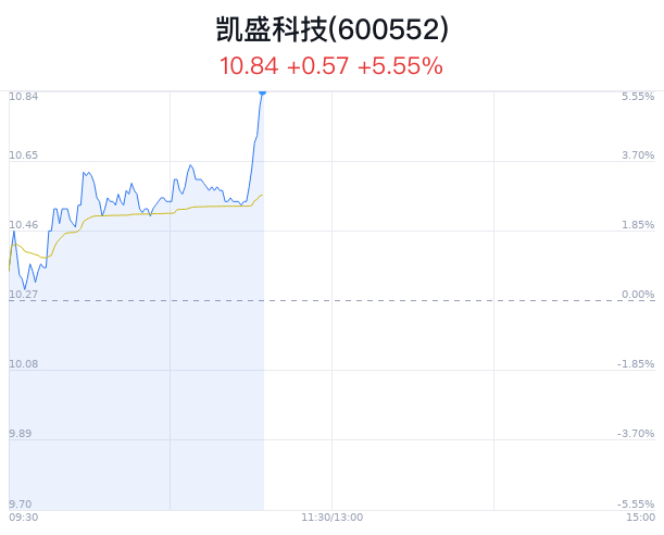 05月17日,凯盛科技(600552)股价大幅上涨,截至11点03分,凯盛科技上涨5.16%,报10.80元/股,成交1.42亿元,换手率1.50%,振幅5.06%。
