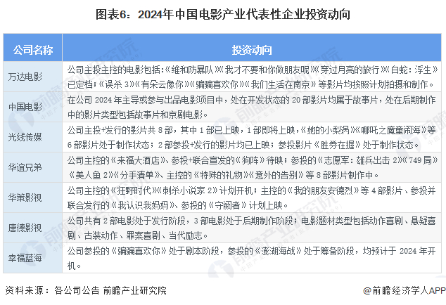从电影产业代表性企业的投资动向来看,企业的投资手段包括主投、参投、发行等,影片题材丰富,包括喜剧、动作、犯罪等类型。