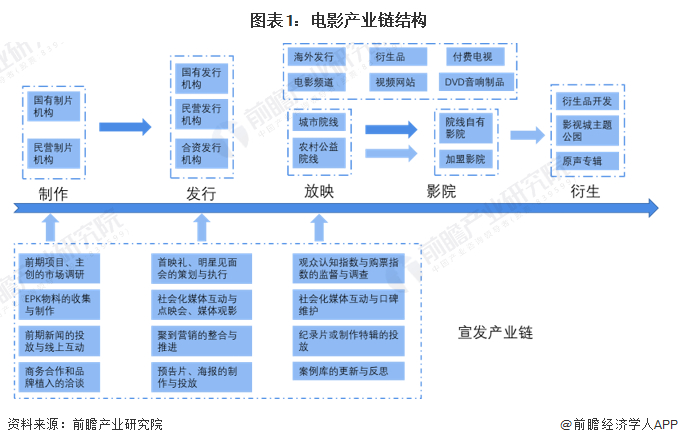 在电影产业链中,发行上承制片方,下连院线播映方,是将影片全国推广的渠道,整个电影产业链的参与者众多。