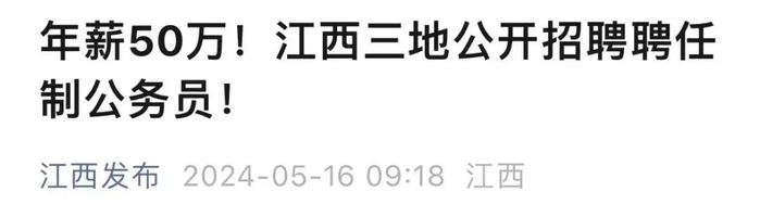 江西多地四五十万元年薪招聘任制公务员