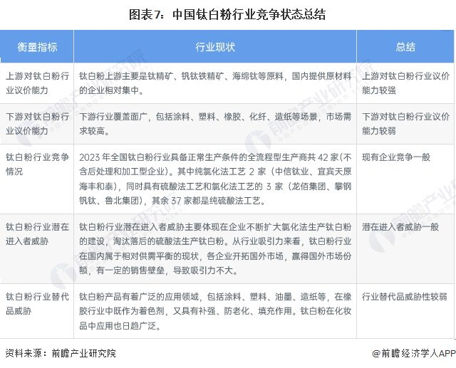 本文核心数据:钛白粉行业竞争力评价;钛白粉行业竞争梯队
