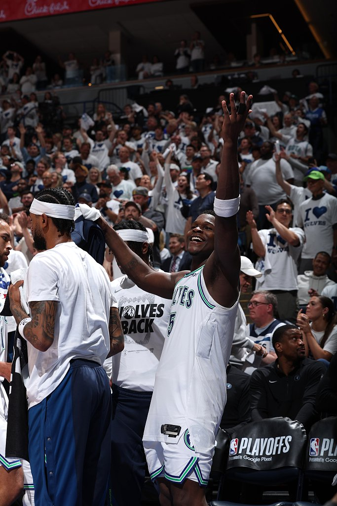 当地时间5月17日,在率领森林狼主场115-70拿下掘金,将大比分扳成3-3后,爱德华兹做出“第7场”见的手势。