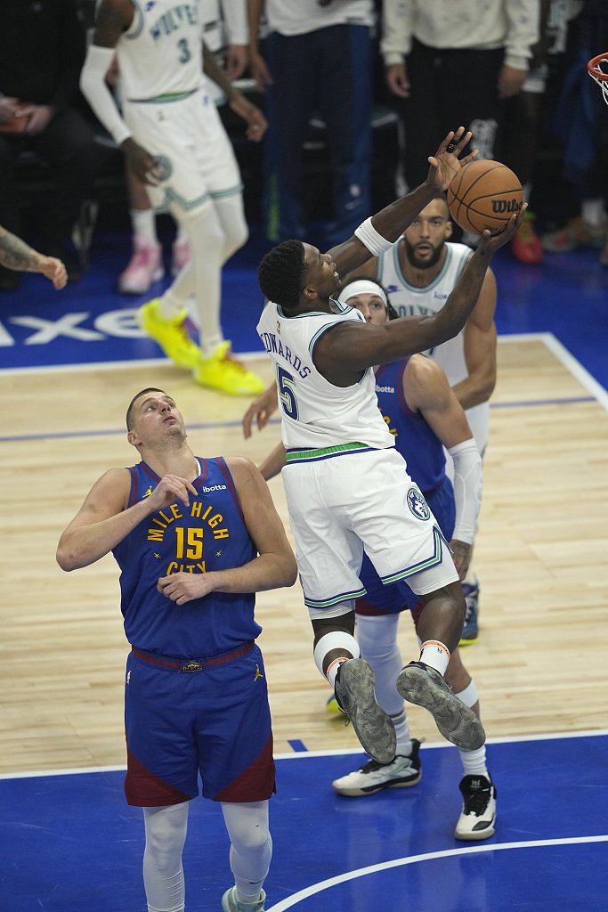 大比分领先后的暂停,爱德华兹走到队友面前,大声提醒队友不要满足:“我们取得领先了,现在感觉很好,但我们要脚踏实地,把比分继续拉开,继续加油!”