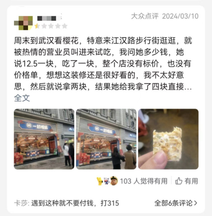 在这些“避坑帖”中,网友们分享的遭遇和翟女士家人的十分相似——被店员盛情邀请品尝后决定购买,店员模糊价格直接切糕并称重,用高价“背刺”毫无心理准备的消费者。