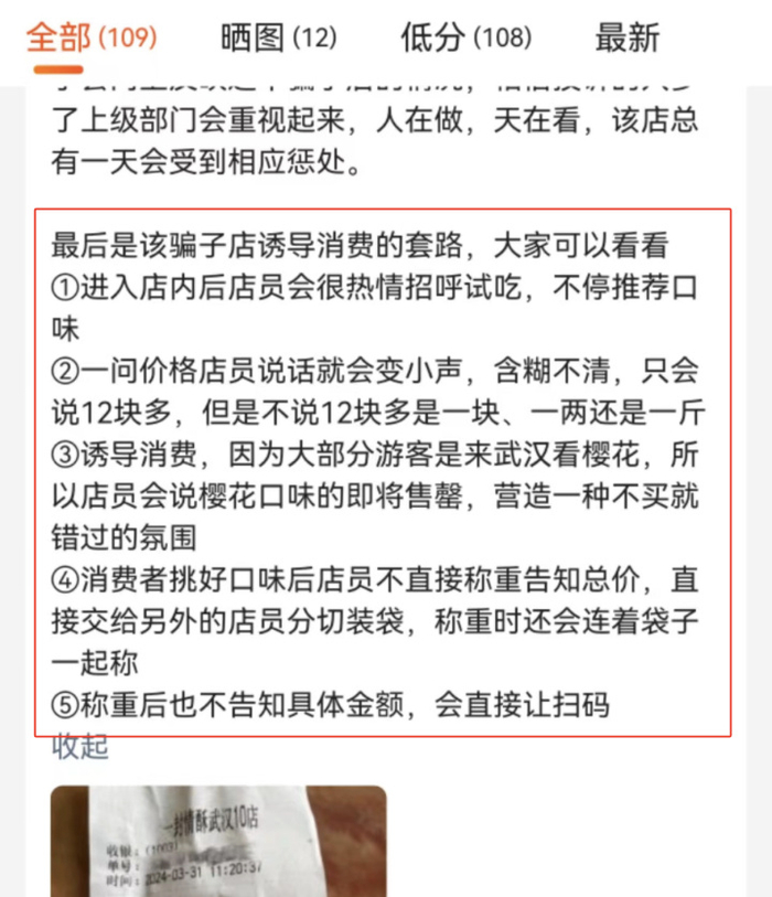 ​法治网记者还注意到,在美团平台上对“一封情酥”江汉路店的评价中,也有大量消费者吐槽该店铺“诈骗”的留言。