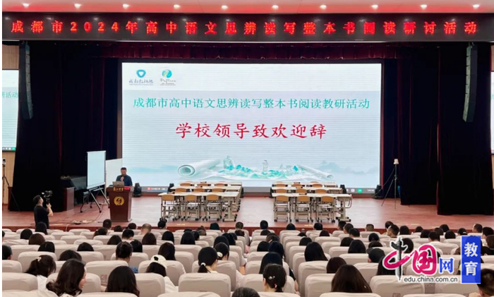 成都七中蒲江学校党委书记雷德健代表学校向亲临本次活动的专家领导和教育同仁表示热烈欢迎,并强调整本书阅读教学在“三新”背景下提升学生语文素养的重要性。