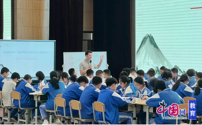 课例示范环节,成都市教育科学研究院附属中学龙尧老师执教《甄贾玉石警世情——〈红楼梦〉导读》。龙尧以“悲剧”为母题,引导学生逐步走进文本,让学生在思辨阅读活动中感受整本书阅读的魅力和价值。