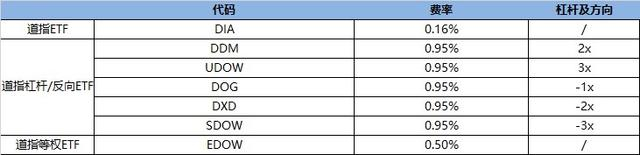 此外,道指还有对应的反向及杠杆ETF,包括DOG、DDM、DXD、UDOW、SDOW等。