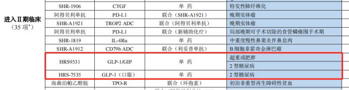 被出售的是一套丰富的组合产品,包括:小分子GLP-1受体激动剂“HRS-7535”、多肽GLP-1/GIP双受体激动剂注液和口服产品“HRS9531”,以及下一代肠促胰岛素产品“HRS-4729”。