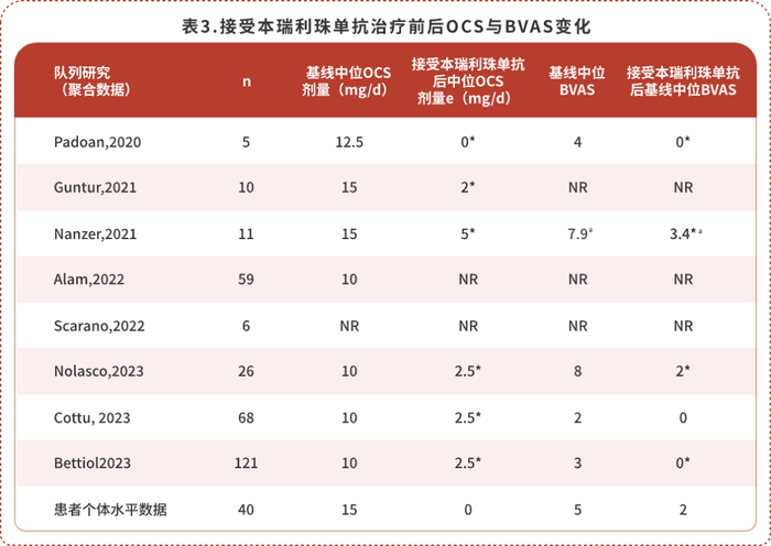 3.患者个体水平数据显示与较大的队列研究相似的降低OCS用量效果和BVAS变化。