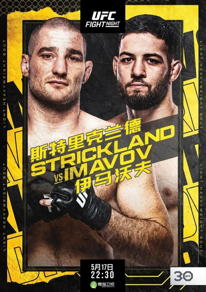 2024年5月17日 22:30,本期青海卫视《龙斗之UFC》将为大家带来UFC格斗之夜第217期,其中当晚的压轴大战将是UFC官方排名中量级第7位的肖恩·斯特里克兰德对阵法国新星纳苏尔丁·伊马沃夫。