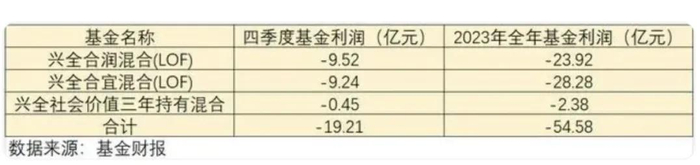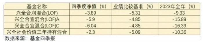 2023年,谢治宇再遭滑铁卢,他掌管的兴全合润全年下跌9.33%,亏损23.92亿元;掌管的兴全合宜A份额全年下跌15.89%,C份额下跌16.39%,亏损28.28亿元。