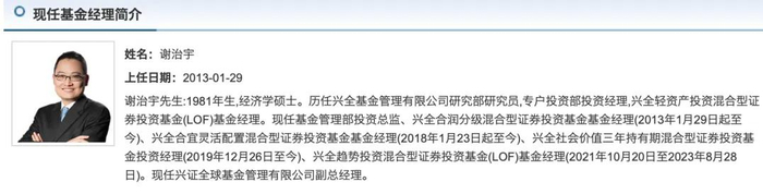 是不是业绩太差、亏损太多、惹怒了基民,谢治宇才从兴全趋势这只基金离职的?