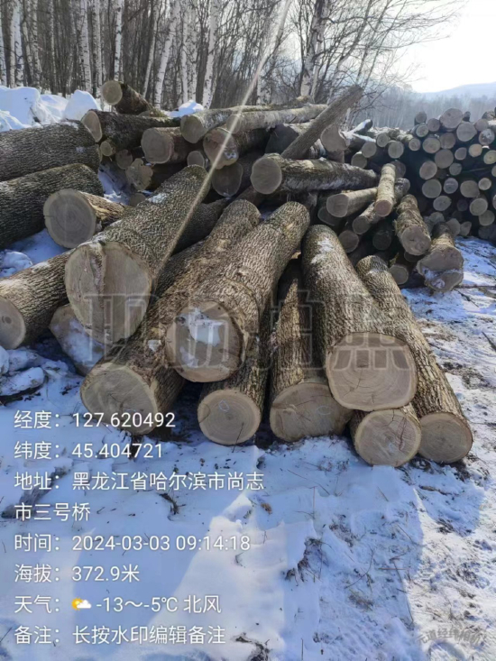 投诉人还告诉记者,2024年1月,帽儿山林场有限公司对外发布公告,对辖区内森林抚育和风灾木清理等生产的木材采取公开竞价的方式对外销售,但他们查访发现,林场内大量的风灾木并未被清理,被砍伐的大都是正常生长的大胸径林木,这并不符合“抚育砍伐”中“砍小留大”的基本原则;而且,采伐水曲柳这种“国保”级树种,采伐单位应该办理《国家重点保护野生植物采集证》;他们还了解到,现场实施砍伐的并不是林场的工作人员,而是购买木材的当事人,这本身也是违规操作。另外,根据正常的砍伐流程,被砍伐的林木应该被运输到林场的储木场进行“二次检尺”,但帽儿山林场此次砍伐的林木都没有经过“二次检尺”就被直接运走。综上,投诉人怀疑此次采伐作业存在“偷梁换柱”,涉嫌“盗伐”,而帽儿山林场和当地执法部门监管失位。
