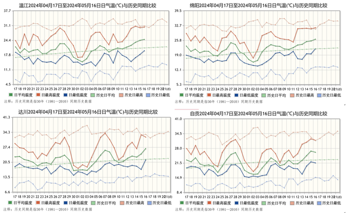 这样的气温是什么概念呢?让我们对比一下。以成都、绵阳、达州、自贡4个盆地城市为例↘↘