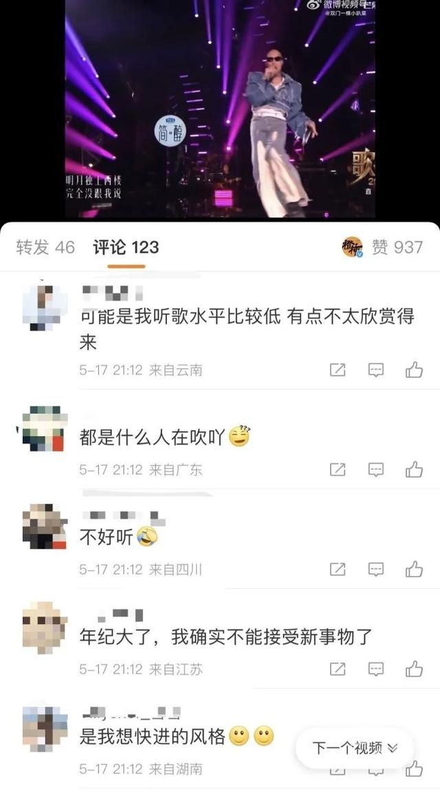 另一位揭榜歌手黄宣则来自中国台湾,作为YELLOW摇滚乐团的主唱,他自2019年以歌手身份出道后,曾连续四年提名金曲奖,其中包括最佳华语男歌手奖,最佳单曲制作人奖,最佳编曲人等多个奖项。网友曝光的一张收视率显示,昨晚黄宣演唱期间,收视率一泻千里。有网友辣评:有点实力,但欣赏不来。