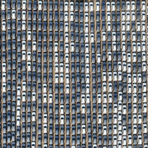 2024年4月18日,航拍山东港口烟台港蓬莱港区,大批等待装船出口的比亚迪电动汽车。视觉中国 资料图