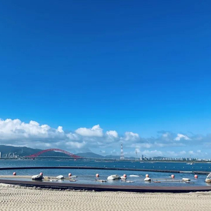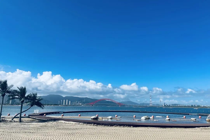 梅山湾沙滩公园是目前华东地区规模最大的人工沙滩,海岸线长达1.88km。站在沙滩上望去,海天一线,整个人陷入一望无际的碧蓝之中,耳边吹来缕缕清凉的海风,仔细聆听着阵阵涛声,所有的烦恼都随着浪花翻滚而去。