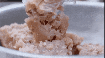去壳的荞麦碾成碎粒,放入水中浸泡。反复搅拌直到汁液缠绵。