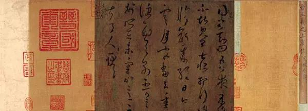 这件古色古香的字卷,是书法史上称为书圣的东晋王羲之所写的一份信札,名为上虞帖。卷子前后盖有南唐和北宋皇室的收藏印章及历代收藏印记,同时保留着北宋内府的装裱格式,是一件难得的艺苑瑰宝。