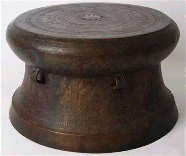 此面铜鼓距今约2200年,鼓身所刻图案纹式内容丰富、活泼生动,鼓底足部一侧卧刻篆文“百廿斤”,弥足珍贵,整器品相完好、铸造精良,在国内实属罕见,堪称国宝级文物。