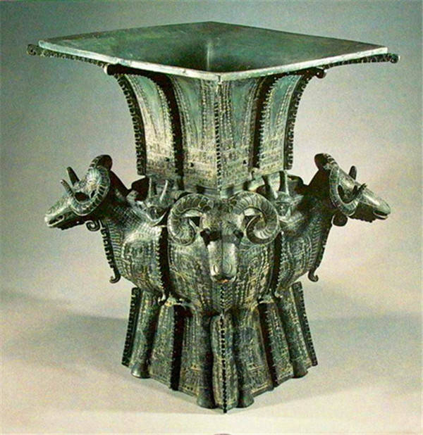 四羊方尊,商朝晚期青铜礼器,祭祀用品。1938年出土于湖南宁乡县黄材镇月山铺转耳仑的山腰上。被誉为中国青铜铸造史上最杰出的作品。