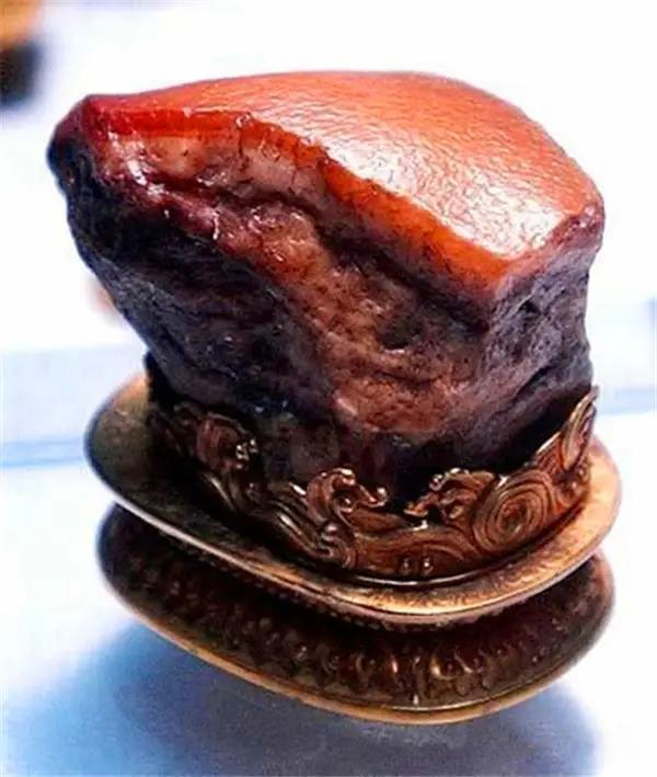 这块清代的肉形石,是一块天然的石头,色泽纹理全是天然形成的,看上去完全是一块栩栩如生的五花肉块。“肉”的肥瘦层次分明、肌理清晰、毛孔宛然。