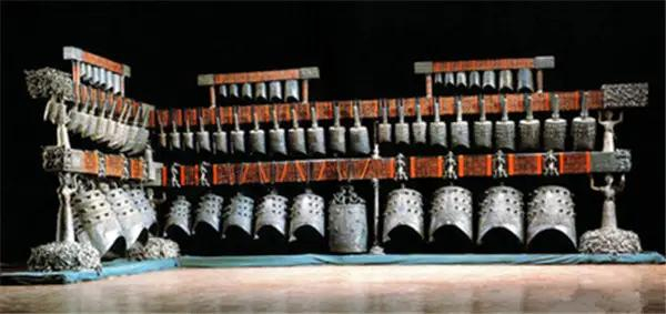 编钟是由六十五件青铜编钟组成的庞大乐器,其音域跨五个半八度,十二个半音齐备。它高超的铸造技术和良好的音乐性能,改写了世界音乐史,被中外专家、学者称之为“稀世珍宝”。