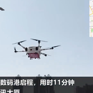 据《大河财立方》报道,当日上午10时13分,一架无人机载着用户下单购买的手机,从河南科技市场数码港启程,用时11分钟抵达新天地通讯大厦,被安全送到8.7公里外的用户手中。