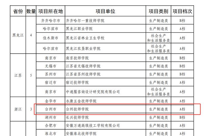 近日,人力资源社会保障部办公厅、财政部办公厅公布2023年国家级高技能人才培训基地项目单位备案名单。台州技师学院入选生产制造类A档基地项目单位,为台州唯一获此殊荣的单位。
